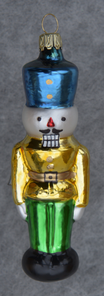 Nußknacker goldene Jacke, grüne Hose, blauer Hut