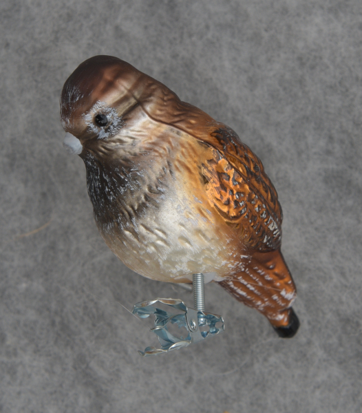 1Stück Spatz aus Glas mit echter Feder auf Clip ca. 10cm